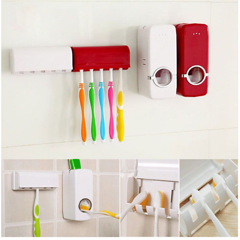 Bekas Tempat Letak Berus Gigi Dan Ubat Gigi Automatic Toothpaste Dispenser 5 Toothbrush Holder Set Wall Mount S Shopee Malaysia