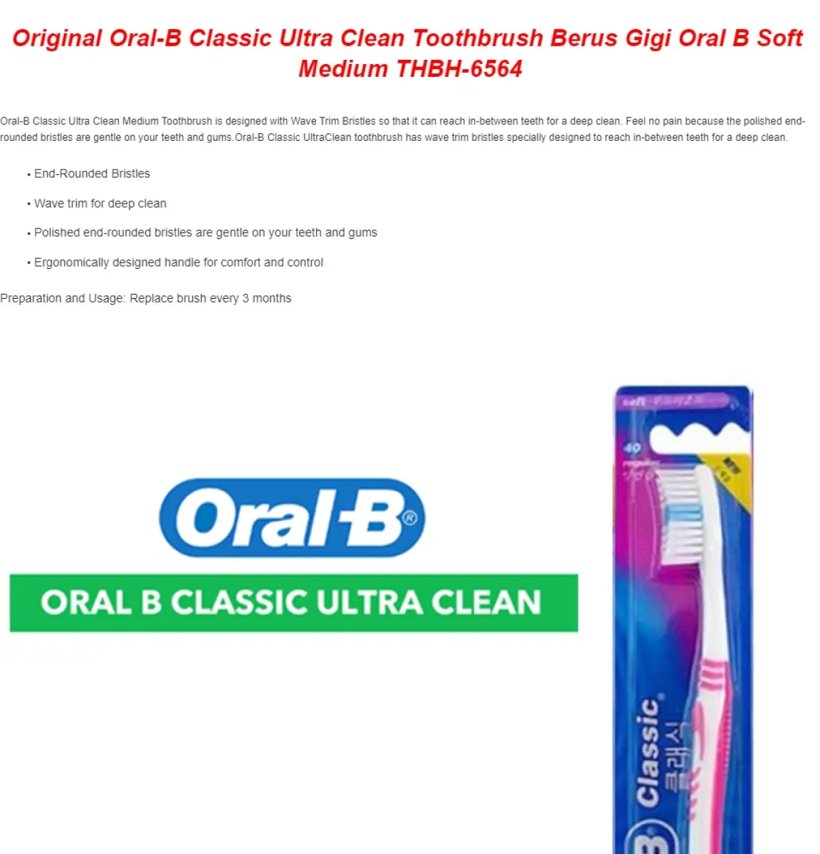Original Oral B Classic Ultra Clean Toothbrush Berus Gigi Oral B Soft Medium Thbh 6564 Lazada